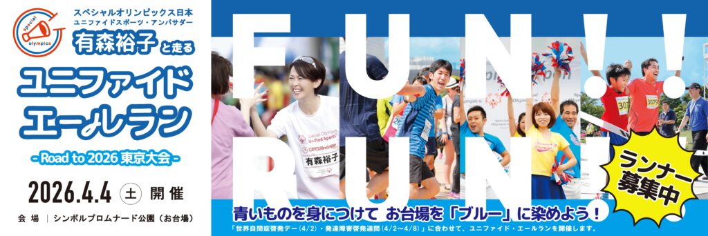 ユニファイド・エールランは、2017年以来9年ぶりの開催で、参加者の皆さまの参加費がチャリティとなり、「走る」ことで知的障害のあるアスリートたちの挑戦への応援となるランイベントです。