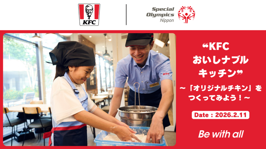 2026年スペシャルオリンピックス日本夏季ナショナルゲーム・東京の開催に向け、大会を盛り上げるために「スペシャルオリンピックス(SO)“ジャーニーMap”」を公開しております。昨年、スペシャルオリンピックス日本(SON)パートナー企業とのSO“ジャーニーMap”取り組み第1弾として、三井住友トラストグループ株式会社と一緒に“みなさんの「ミライ」と「お金」”講座を開催いたしましたが、この度、SO“ジャーニーMap”取り組み第2弾として、SONパートナー企業 日本ケンタッキー・フライド・チキン株式会社(日本KFC)と「❝KFCおいしナブルキッチン❞~「オリジナルチキン」をつくってみよう!~」のイベントを開催することとなりました。